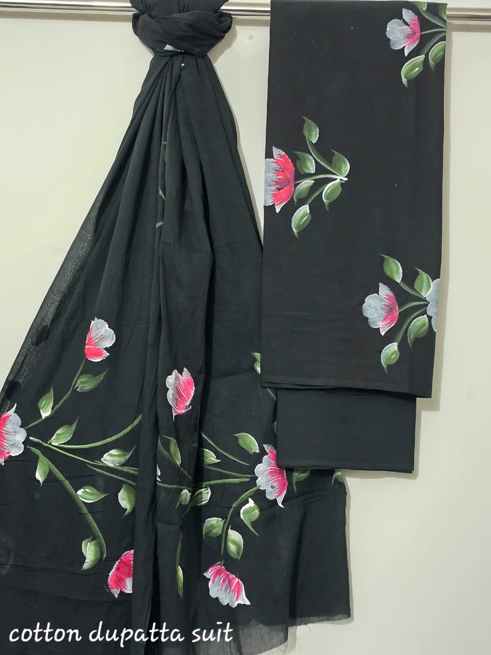 Complete 3-Piece Set – Includes 2.5 meters of printed cotton top fabric, 2.5 meters of coordinated cotton dupatta with matching block prints, and 2.5 meters of cotton bottom fabric with subtle printed detailing.
